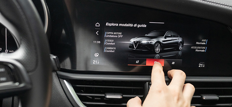 Une technologie qui change et facilite votre quotidien. A bord de Giulia, retrouvez une large gamme de services de connectivité Alfa Connect.En outre, grâce à l'Alfa Connect Box, vous pouvez accéder à des offres de partenaires et à des avantages d'assurance liés aux données télématiques de votre véhicule.